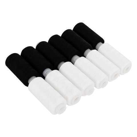 Нитки швейные 45 ЛЛ, 200 м, полиэстер, НАБОР 12 штук, 6 белых / 6 черных, DEVELIA (Девелиа), 609620