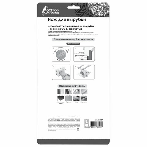 Ножи для вырубки ОСТРОВ СОКРОВИЩ - это пластины с мощными фигурными ножами, позволяющие легко и быстро создавать вырубки из множества различных материалов: картон, фоамиран, фетр, кожа, пробка и другие. Используются с машинкой для вырубки и тиснения ОС-5.