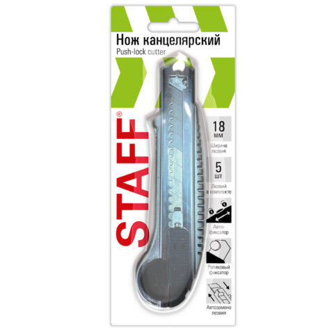 Канцелярский нож STAFF – универсальный, удобный и простой инструмент, который применяется во многих сферах: на складе, в офисе, строительстве, производстве, творчестве и дома. Предназначен для резки различных материалов разной плотности и толщины.