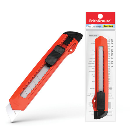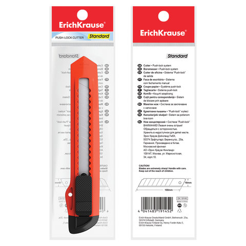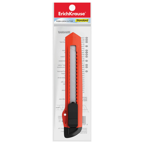 Нож канцелярский 18 мм ERICH KRAUSE "Standard", автофиксатор, корпус ассорти, подвес, 19145