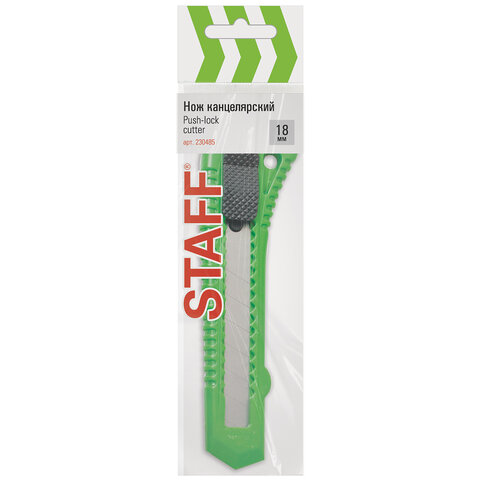 Нож канцелярский 18 мм STAFF "Basic" фиксатор, цвет корпуса ассорти, упаковка с европодвесом, 230485