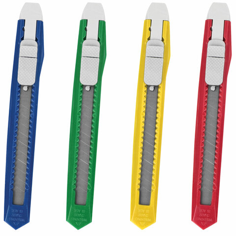 Нож канцелярский 9 мм STAFF "Basic Economy", фиксатор, клип, корпус ассорти, 237080