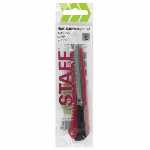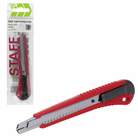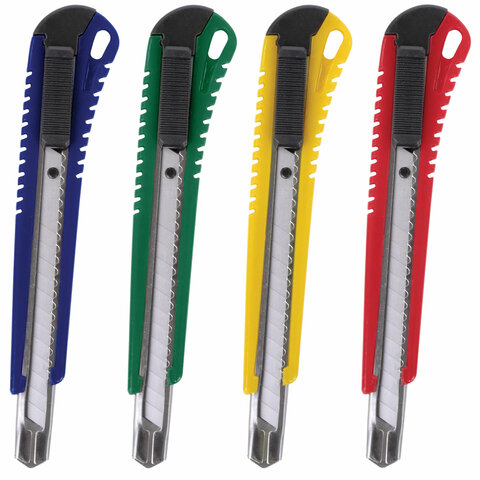 Нож канцелярский 9 мм STAFF "Profit", усиленный, металлические направляющие, автофиксатор, ассорти, 237082