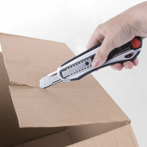 Канцелярский мощный нож BRAUBERG «Heavy duty» – незаменимый инструмент для разрезания бумажных или картонных листов, линолеума, кожи и других плоских поверхностей. Оставляет ровный, без зазубрин разрез, что особенно важно при соблюдении точности резки.