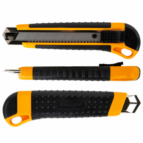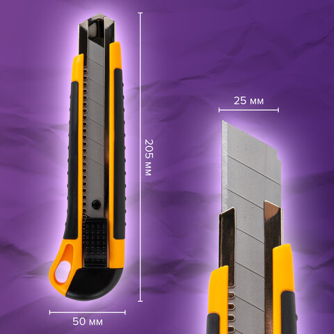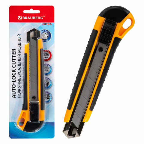 Нож универсальный мощный, 25 мм, BRAUBERG EXTRA, автофиксатор, резиновые вставки, 238731