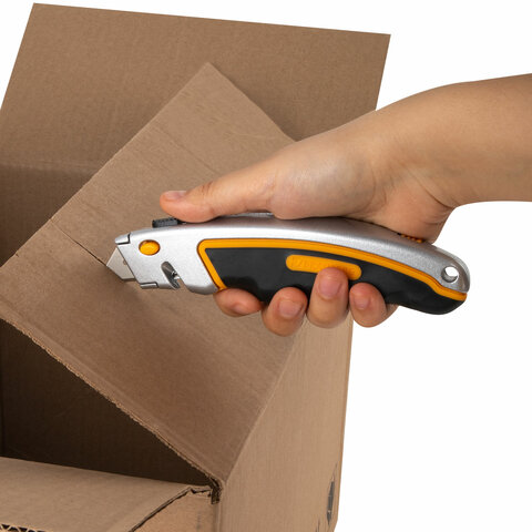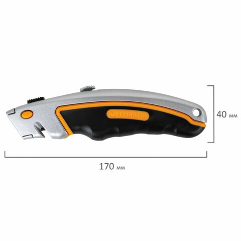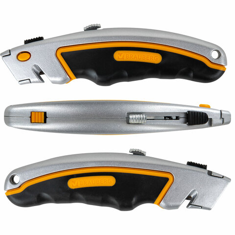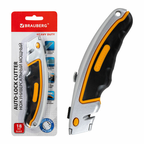 Нож универсальный мощный алюминиевый BRAUBERG "Heavy duty", автофиксатор, резиновые вставки, 238735