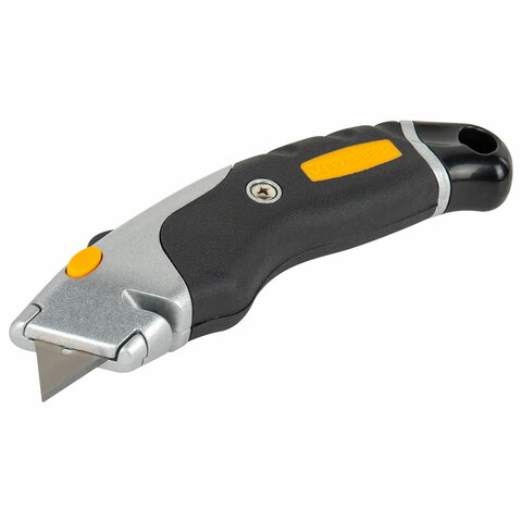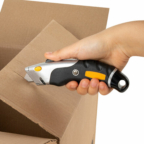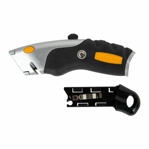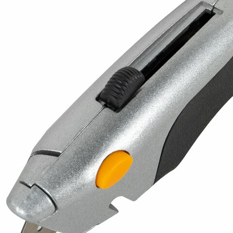 Нож универсальный мощный алюминиевый BRAUBERG "Heavy duty M", автофиксатор, резиновые вставки, 238736