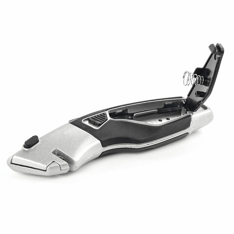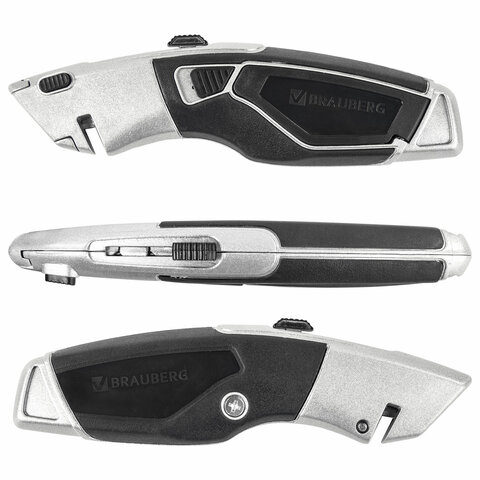 Нож универсальный мощный BRAUBERG "Professional", 4 лезвия в комплекте, автофиксатор, металл, 237160