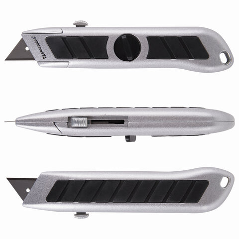 Нож универсальный мощный BRAUBERG "Professional", 6 лезвий в комплекте, фиксатор, металл, 235403