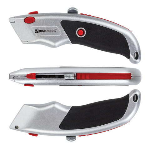 Нож универсальный мощный BRAUBERG "Professional", 6 лезвий в комплекте, фиксатор, металл, 235404