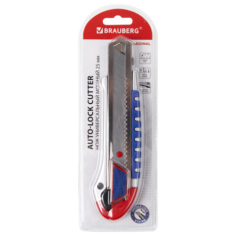 Нож универсальный мощный 25 мм BRAUBERG "Professional", металлический корпус, 237448
