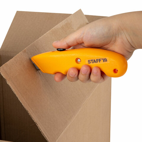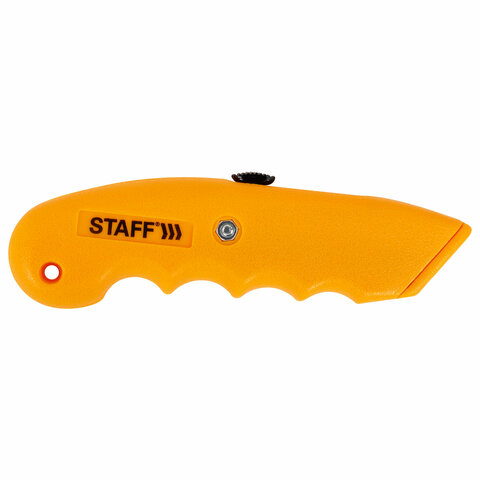 Универсальный мощный нож с автофиксатором STAFF PRO – инструмент, который поможет при резке бумаги, пластика, картона и прочих плотных и вязких материалов: линолеума, гипсокартона, ковролина.