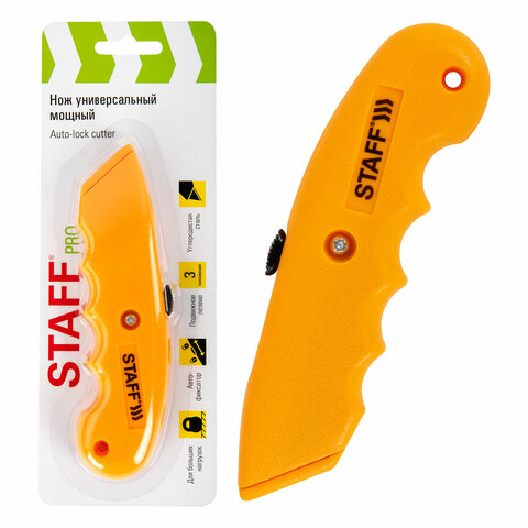 Нож универсальный мощный STAFF PRO, автофиксатор с 3 положениями, ABS-пластик, 238733