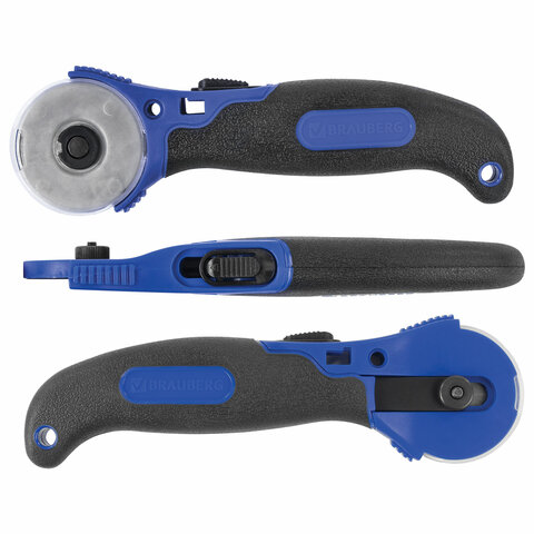 Нож раскройный роликовый 45 мм BRAUBERG, круглое лезвие, резиновые вставки, 237162