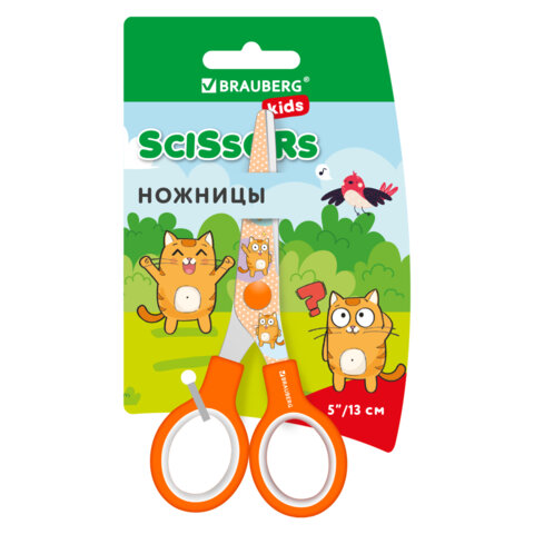 Ножницы 130 мм оранжевые, с цветной печатью "Котики", закругленные, BRAUBERG KIDS, 238351