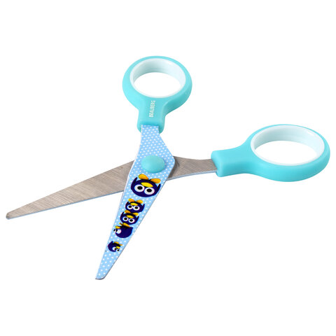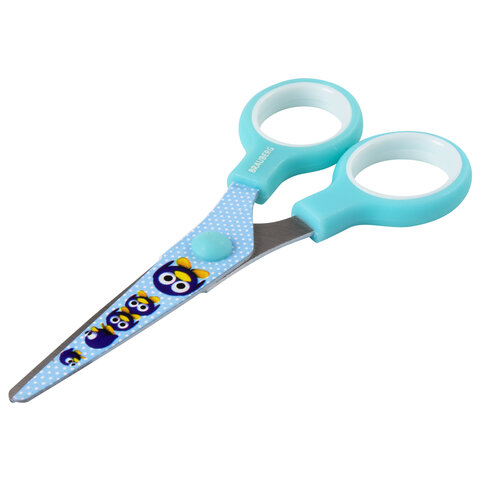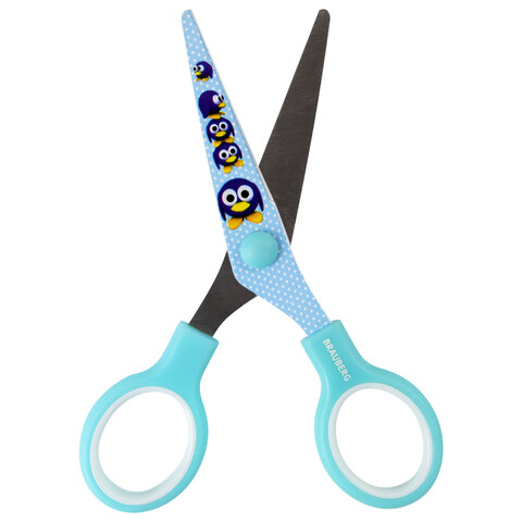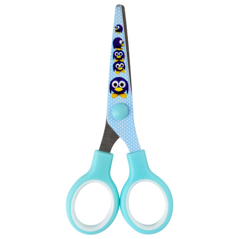 Ножницы 130 мм с цветной печатью "Пингвины", голубые, закругленные, BRAUBERG KIDS, 232271