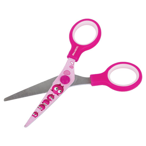 Ножницы 130 мм с цветной печатью "Поросята", розовые, закругленные, BRAUBERG KIDS, 232272