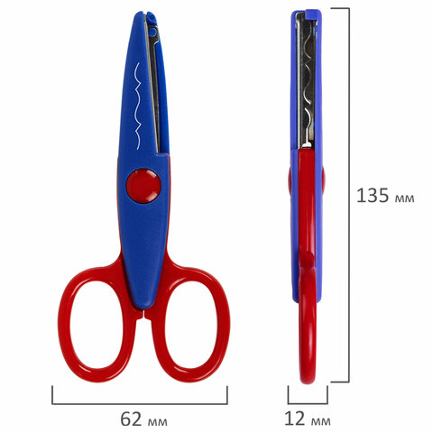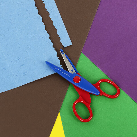 Ножницы с фигурным лезвием ПИФАГОР предназначены специально для детского творчества. Используются для вырезания деталей аппликаций и создания фигурного края поделок: открыток, страничек альбомов и блокнотов.