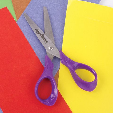 Ножницы ЮНЛАНДИЯ разработаны специально для детского творчества. Техника работы этим инструментом требует координации обеих рук, так как они одновременно выполняют разные движения. Это положительно влияет на развитие мелкой моторики и образного мышления.