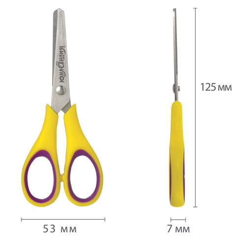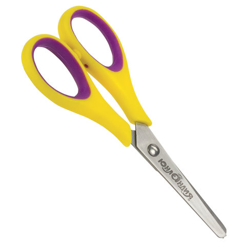 Ножницы ЮНЛАНДИЯ "ВОЗДУШНЫЙ ЗМЕЙ", 125 мм, для левши, резиновые вставки, желто-фиолетовые, европодвес, 236783