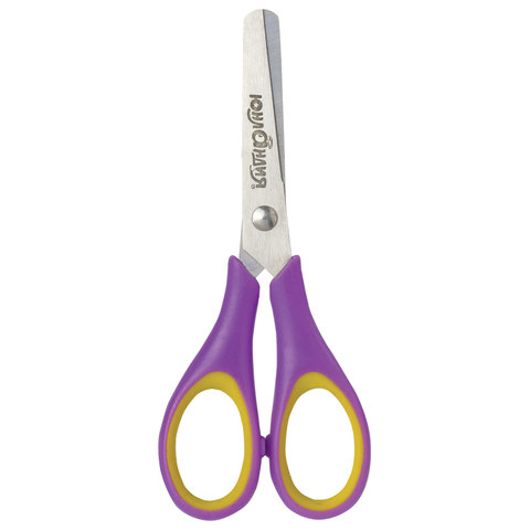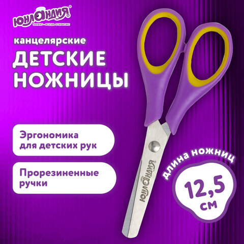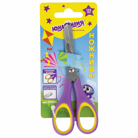 Ножницы ЮНЛАНДИЯ "ВОЗДУШНЫЙ ЗМЕЙ", 125 мм, для правши, резиновые вставки, фиолетово-желтые, европодвес, 236856