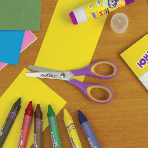 Ножницы ЮНЛАНДИЯ разработаны специально для детского творчества. Техника работы этим инструментом требует координации обеих рук, так как они одновременно выполняют разные движения. Это положительно влияет на развитие мелкой моторики и образного мышления.