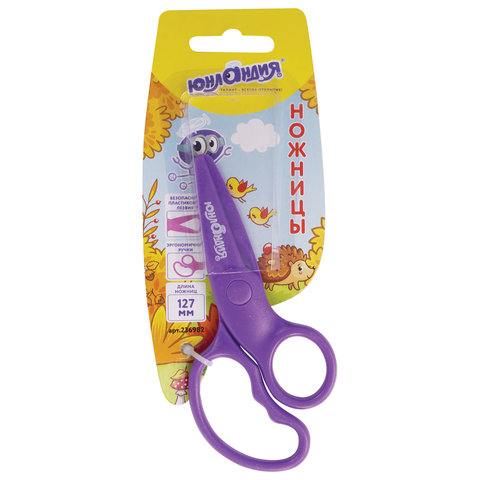 Ножницы ЮНЛАНДИЯ "ЁЖИК", 127 мм, безопасные пластиковые лезвия, эргономичные ручки, ассорти, 236982