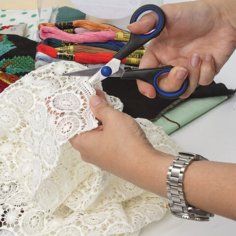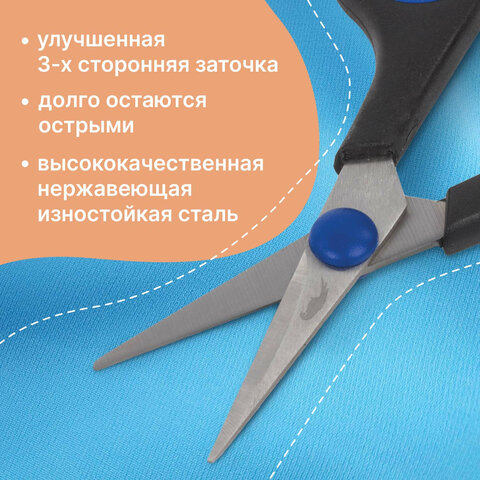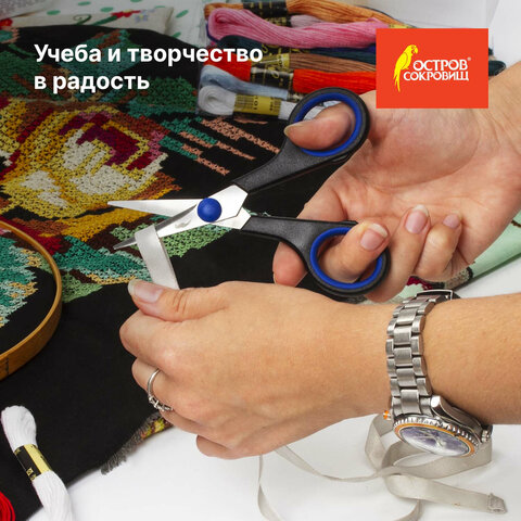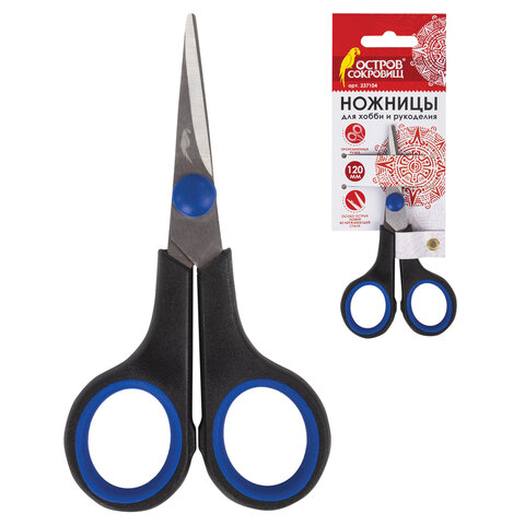 Ножницы для хобби и рукоделия ОСТРОВ СОКРОВИЩ 120 мм, 3-х сторонняя заточка, черно-синие, 237104