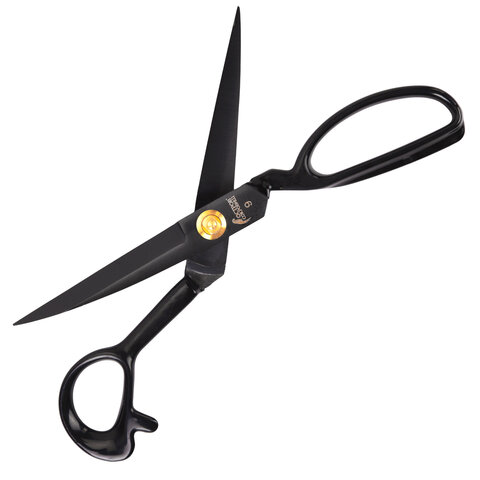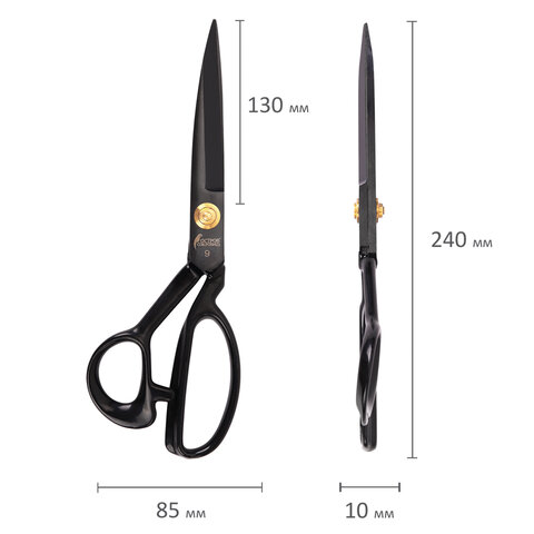 Ножницы портновские 240 мм, КЛАССИЧЕСКИЕ, черные, ручки с силиконовым покрытием, ОСТРОВ СОКРОВИЩ, 665598
