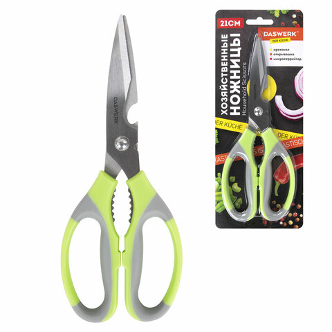 Ножницы кухонные DASWERK (ДАСВЕРК), 210 мм, с орехоколом, открывашкой, зазубренным лезвием, 608903