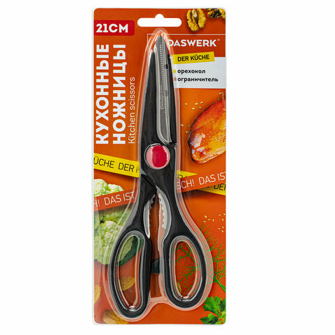 Ножницы кухонные DASWERK (ДАСВЕРК), 210 мм, с орехоколом, зазубренные, 608905