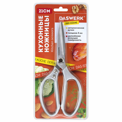 Ножницы кухонные DASWERK (ДАСВЕРК), 210 мм, удлиненное лезвие, металлические ручки, 608900