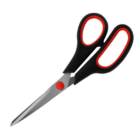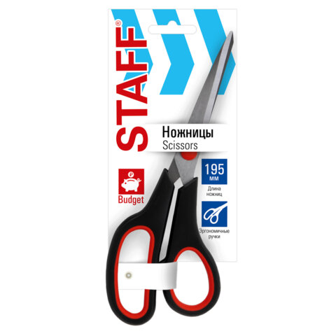 Ножницы 195 мм, бюджет, резиновые вставки, черно-красные, STAFF ECO, 238945