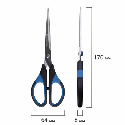 Ножницы BRAUBERG "Office-Expert" 170 мм, сине-черные, резиновые вставки, 3-х сторонняя заточка, 231561