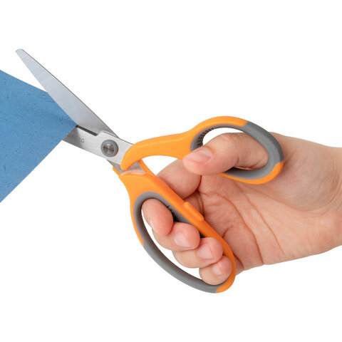 Набор универсальных ножниц BRAUBERG. Эти ножницы идеально подходят для резки бумаги, картона и других материалов, что делает их незаменимыми как в офисе, так и дома.