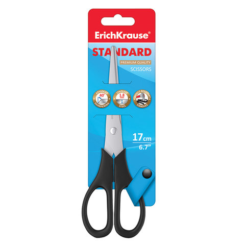 Ножницы ERICH KRAUSE "Standard", 170 мм, черные, в картонной упаковке с европодвесом, 14861