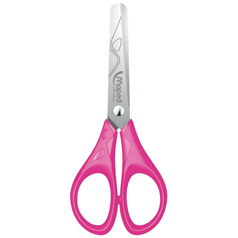 Канцелярские ножницы MAPED для использования в школе и дома. Подходят для детей от 4-х лет. Привлекательный дизайн с яркими ручками и узором на лезвии. Цвет ручек - ассорти: голубой, салатовый, розовый.