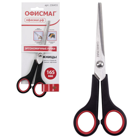 Ножницы ОФИСМАГ «Soft Grip» длиной 165 мм - идеальный инструмент для резки картона, бумаги и других материалов. Модель входит в число популярных товаров для офиса и дома.