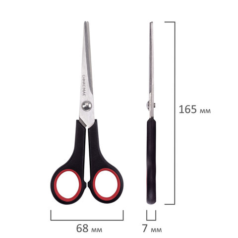 Ножницы ОФИСМАГ "Soft Grip", 165 мм, резиновые вставки, черно-красные, 3-х стороняя заточка, 236455