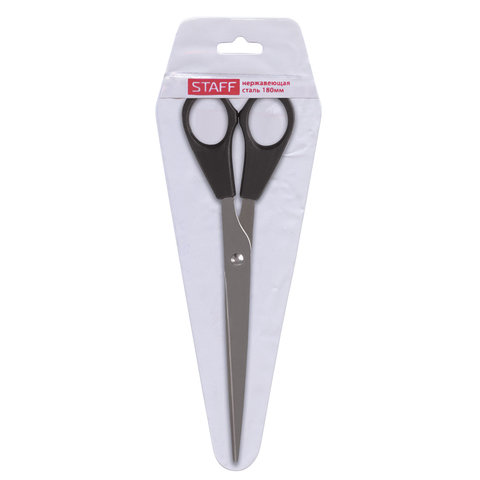 Ножницы STAFF Basic, 180 мм, чёрные, ПВХ чехол с европодвесом, 236939