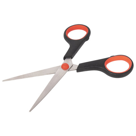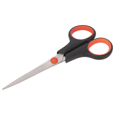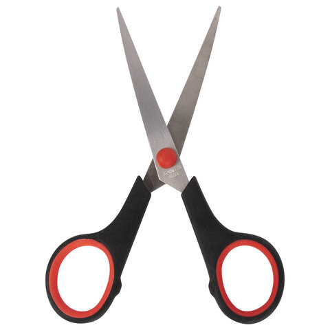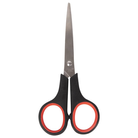 Ножницы STAFF EVERYDAY, 150 мм, бюджет, резиновые вставки, черно-красные, ПВХ чехол, 237497.