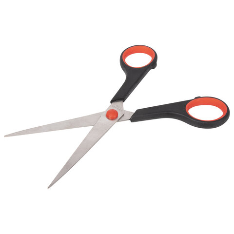 Ножницы STAFF EVERYDAY, 170 мм, бюджет, резиновые вставки, черно-красные, ПВХ чехол, 237498