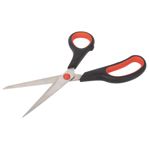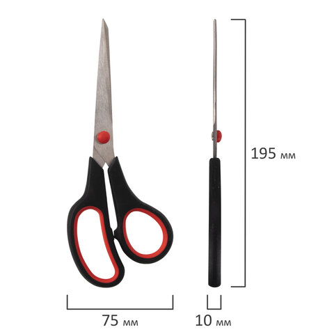 Ножницы STAFF EVERYDAY, 195 мм, бюджет, резиновые вставки, черно-красные, ПВХ чехол, 237499