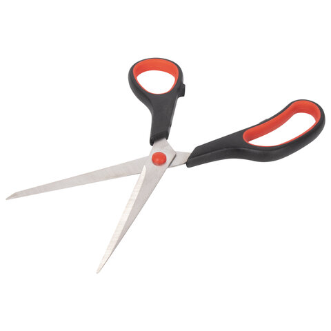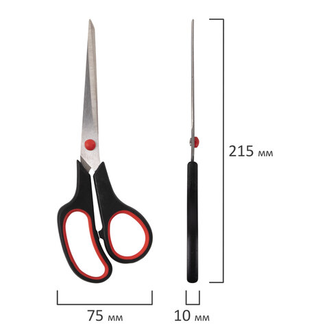 Ножницы STAFF EVERYDAY, 215 мм, бюджет, резиновые вставки, черно-красные, ПВХ чехол, 237500