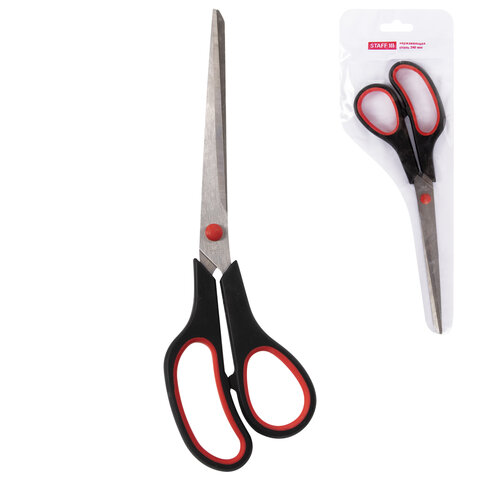 Ножницы STAFF EVERYDAY, 235 мм, бюджет, резиновые вставки, черно-красные, ПВХ чехол, 237501