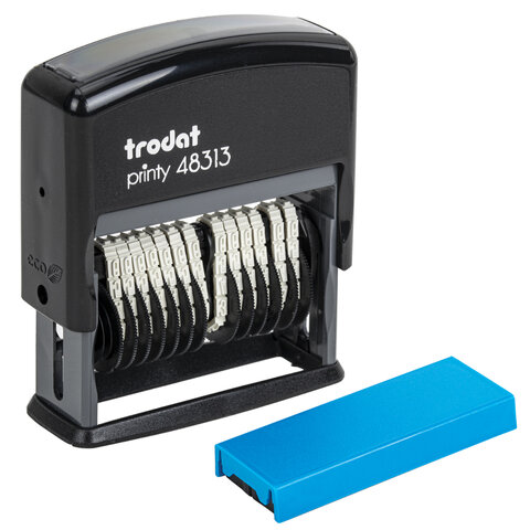 Нумератор 13 разрядов, оттиск 42х3,8 мм, синий, TRODAT 48313 P2, корпус черный, подушка, 53198