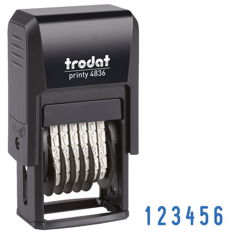 Нумератор 6 разрядов, оттиск 15х3,8 мм, синий, TRODAT 4836 P4, корпус черный, подушка, 53199