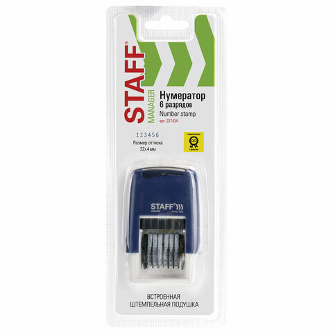Нумератор 6-разрядный STAFF, оттиск 22х4 мм, "Printer 7836", 237434