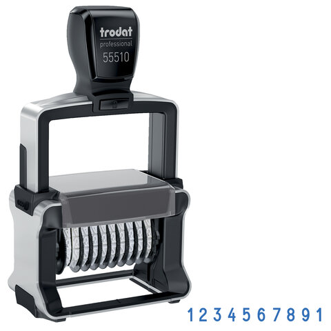 Десятиразрядный нумератор позволяет проставить одинаковый номер на нескольких экземплярах документа или товара. Смена номера производится вращением колесика.