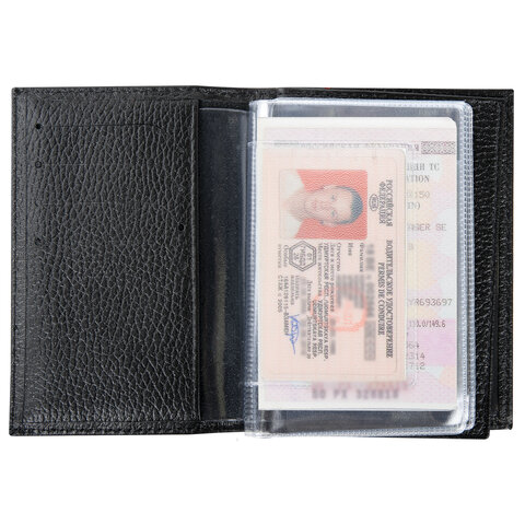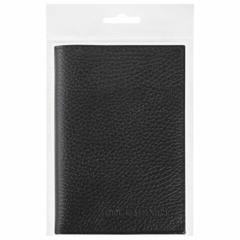 Обложка для автодокументов и паспорта натуральная кожа флоттер, "DOCUMENTS", черная, BRAUBERG 238193